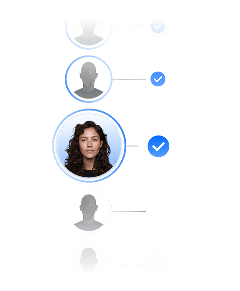 Cut out repeat verifications by linking selfie biometrics to a verified reusable identity. This identity is verified against authoritative sources, including government biometric databases, delivering near-deterministic accuracy and enhanced fraud protection.