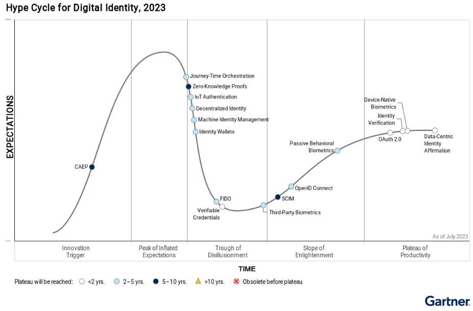 [1] Gartner, “Hype Cycle for Digital Identity, 2023”, Ant Allan, Nathan Harris, June 26, 2023.