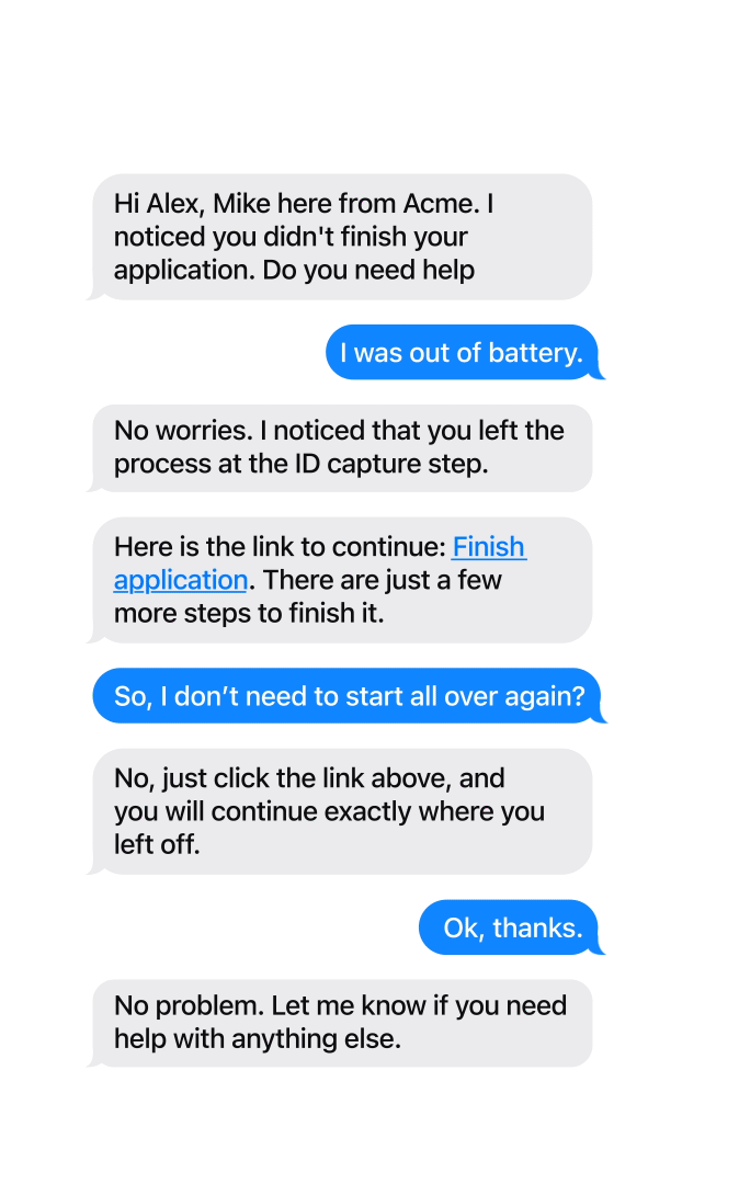 Conversely, are their challenges fully understood? Prospective customers hit pause at the verification stage for a variety of reasons — the phone rings, a battery dies, the wallet is in yesterday’s pants. In other words, life happens. Do you have a tested method for re-engaging and reconnecting with a distracted user? Have you considered how you can deploy Artificial Intelligence (AI) tools in the effort?