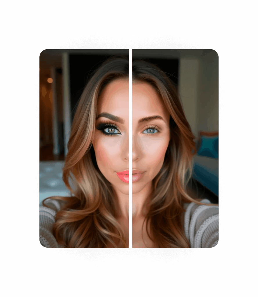 Complex makeup techniques are applied to change the appearance of key facial features, making it harder for systems to recognize the individual.