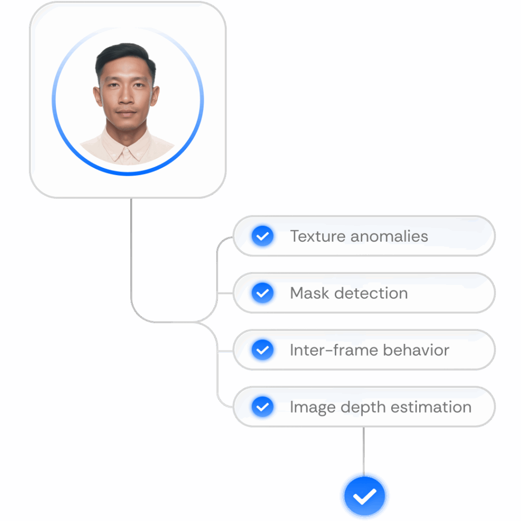 Our advanced liveness detection within Incode Deepsight verifies real people in manipulated or synthetic footage, with no friction or user interaction needed.
