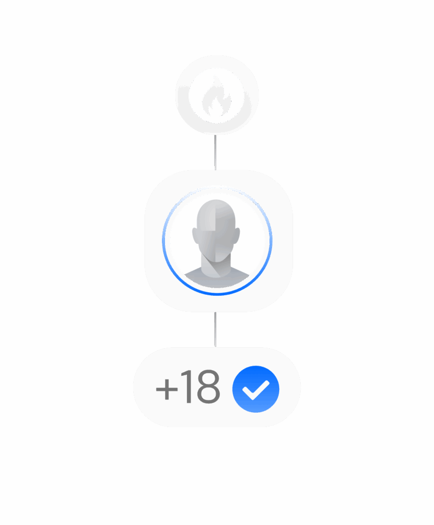Three user-friendly ways to seamlessly verify age. Using the least invasive method first, Incode’s dynamic flow escalates only when needed, ensuring global compliance and maximizing conversion.